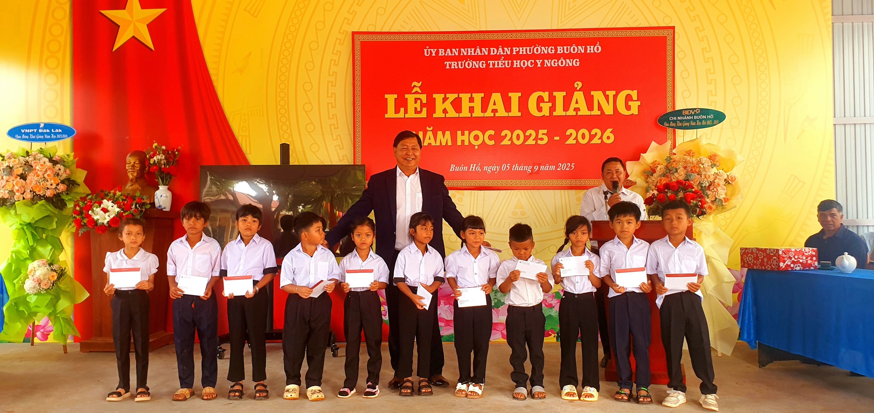 Chào mừng năm học mới 2025-2026 🎉 Hòa trong không khí rộn ràng của Lễ khai giảng và kỷ niệm 80 năm truyền thống ngành giáo dục, trường Tiểu học Y Ngông vinh dự đón nhận những món quà ý nghĩa: 🎁 2 phần quà từ UBND phường Buôn Hồ 🎁 10 phần quà từ cô Linh Nga (gia đình ông Y Ngông Niê Kdăm) 🎁 20 suất quà từ Ngân hàng Agribank 🎁 25 triệu đồng tiền mặt từ ngân hàng đầu tư và phát triển BIDV chi nhánh Buôn Hồ để xây thêm nhà đa năng, tổng trị giá 47 triệu đồng. 🎁Ngoài ra, nhà trường còn nhận được các bộ sách vở để chuẩn bị cho năm học mới! Tổng giá trị các phần quà gần 50 triệu đồng! Nhà trường trân trọng cảm ơn sự quan tâm, đồng hành của các tập thể, cá nhân đã mang đến niềm vui và động lực cho các em học sinh bước vào năm học mới tràn đầy hứng khởi và thành công! 🌟📚
